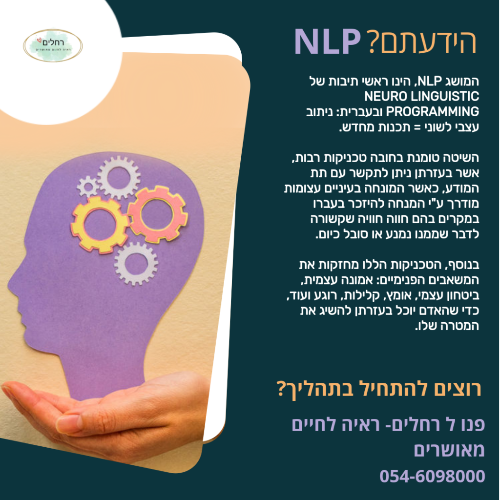 רציתם לשפר את איכות החיים שלכם? ניתן לעשות זאת בקלות ובאופן יעיל עם טיפול בשיטת NLP! בואו לגלות כיצד ניתן לשפר את התקשורת ולהפוך לגרסה טובה יותר של עצמנו. רחלים- ראיה לחיים מאושרים מזמינים אתכם להתחיל את המסע לשיפור האיכות בחיים!