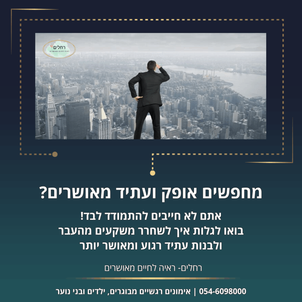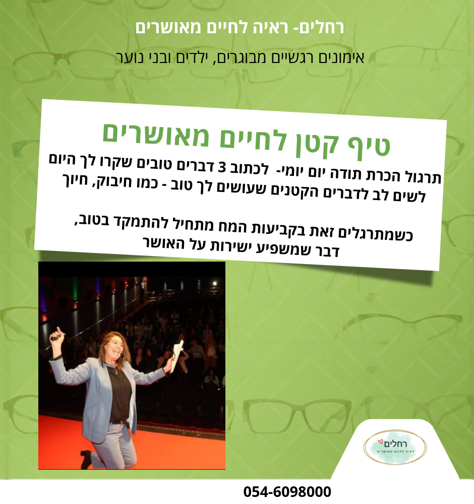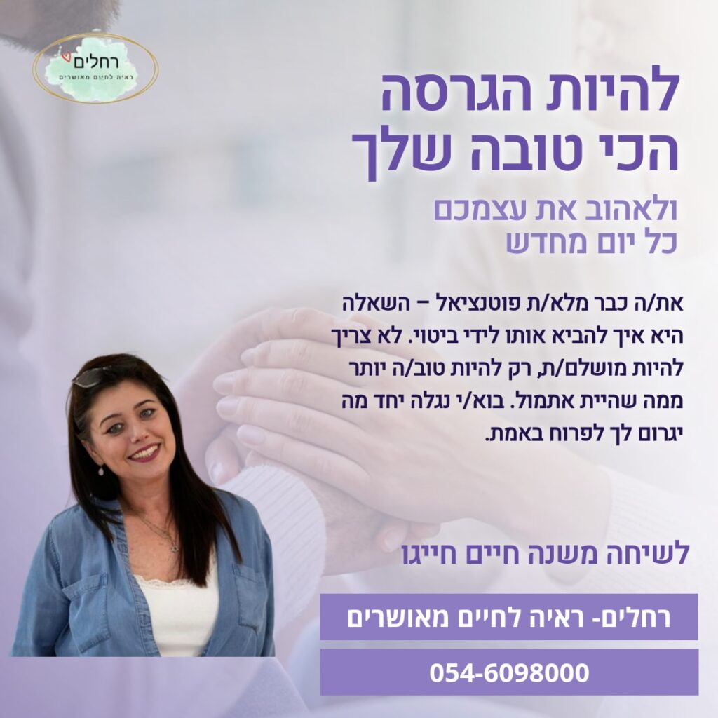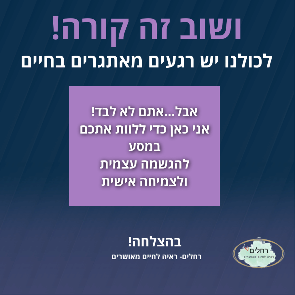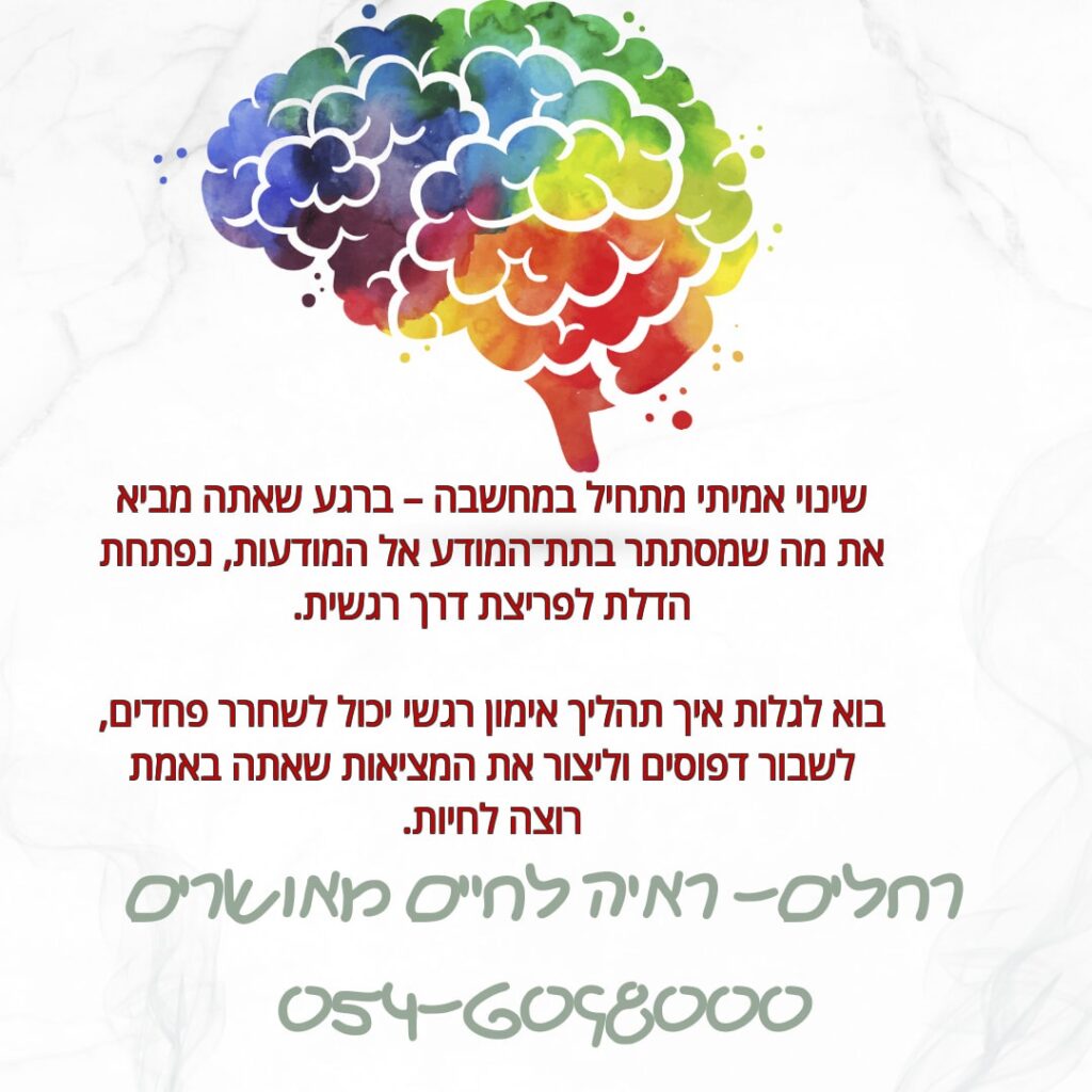 חפשת דרך להתחבר לעצמך מחדש? הגעת למקום הנכון! רחלים- ראיה לחיים מאושרים מזמינה אותך לגלות את הכוח שבתוכך וליצור שינוי אמיתי בחייך. בואו נשתף ביחד במסע האישי שלך ונמצא את האושר שממתין לך. נשמח ללוותך בדרך!